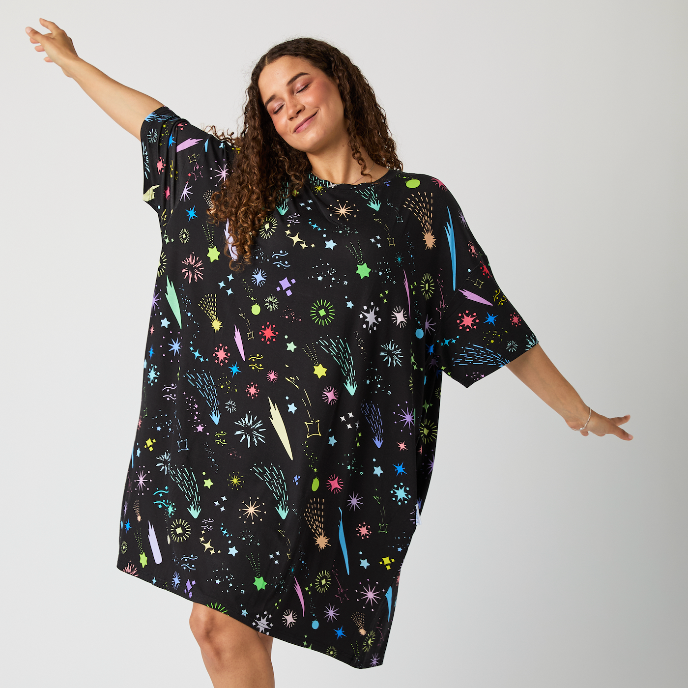 The new Allsleepers Sleep Tee. Oversized, super-stretchy, it's the comfiest, snuggliest, softest tee you'll ever wear. Our buttery-soft bamboo and elastane fabric is weightless during your sleep and beyond.